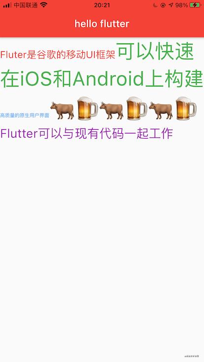 Text我们一开始讲过了,这里就再讲一点关于字符串相关的,如果需要拼接字符串可以使用符号,如果字符串中有特殊符号,那就使用符号,如果字符串中有特殊符号,那就使用符号,如果字符串中有特殊符号,那就使用{}。其他Text常用的属性,跟我们iOS中都差不太多,需要注意的是Text的样式,是在style里面设置的。下面看一下APP显示的效果