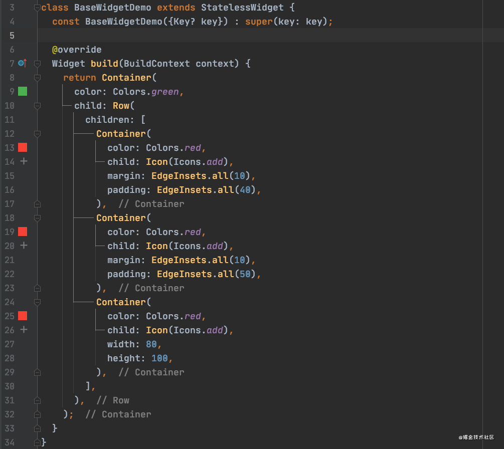 Container是个容器,Row是个用于布局的类,跟Column,Center类似,根据代码查看一下APP的显示,就能大概明白意思了,代码如下: