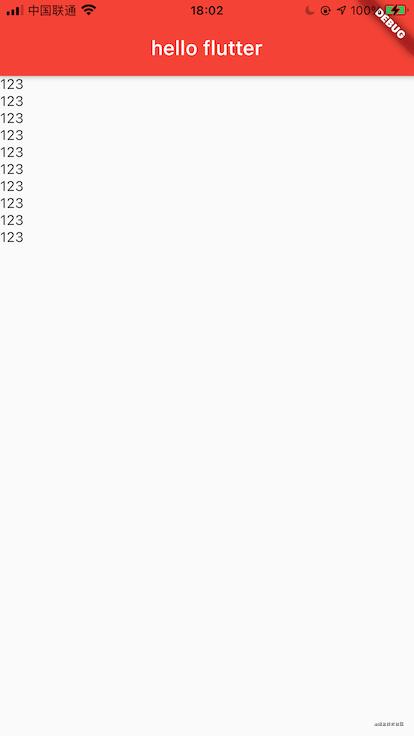 itemBuilder属性就是一个代码块,用来配置每个item的样式,我们可以先统一返回一个Text文本看看效果。