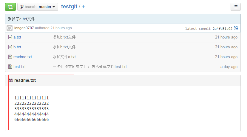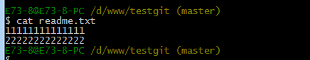 如上可以看到,readme.txt文件内容从一行11111111改成 二行 添加了一行22222222内容。