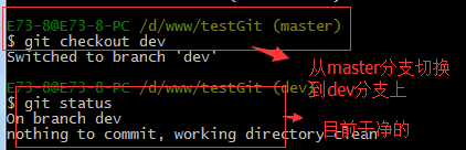 git checkout –b dev 创建dev分支 并切换到dev分支上