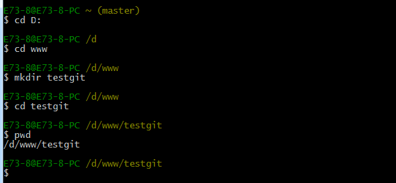 所以创建一个版本库也非常简单,如下我是D盘 –> www下 目录下新建一个testgit版本库。
