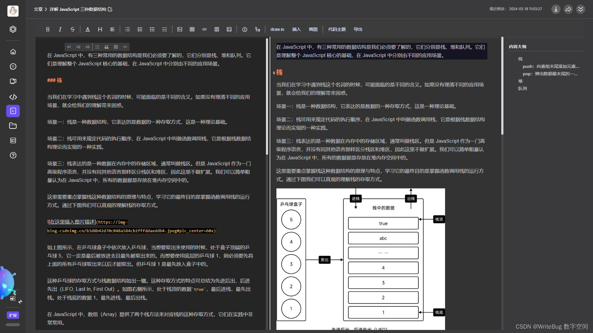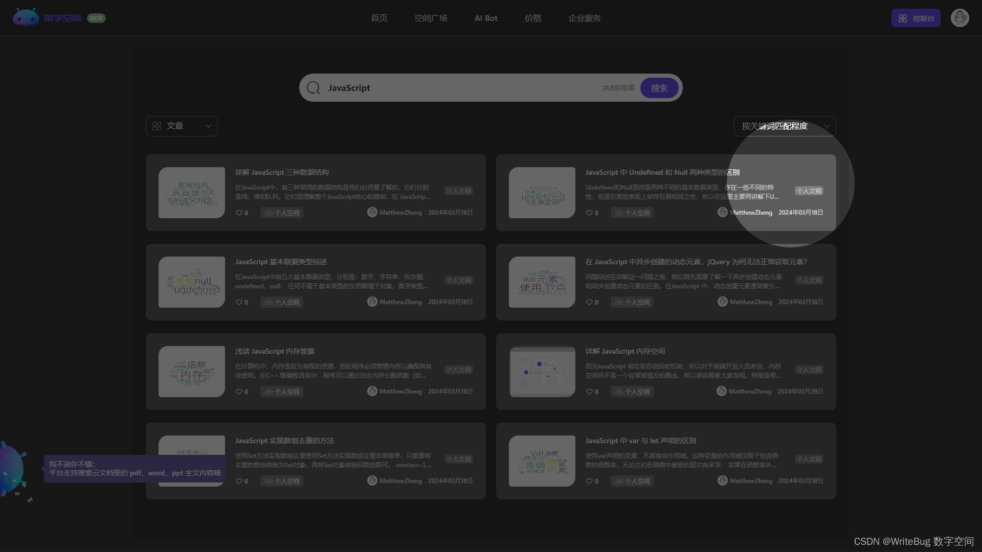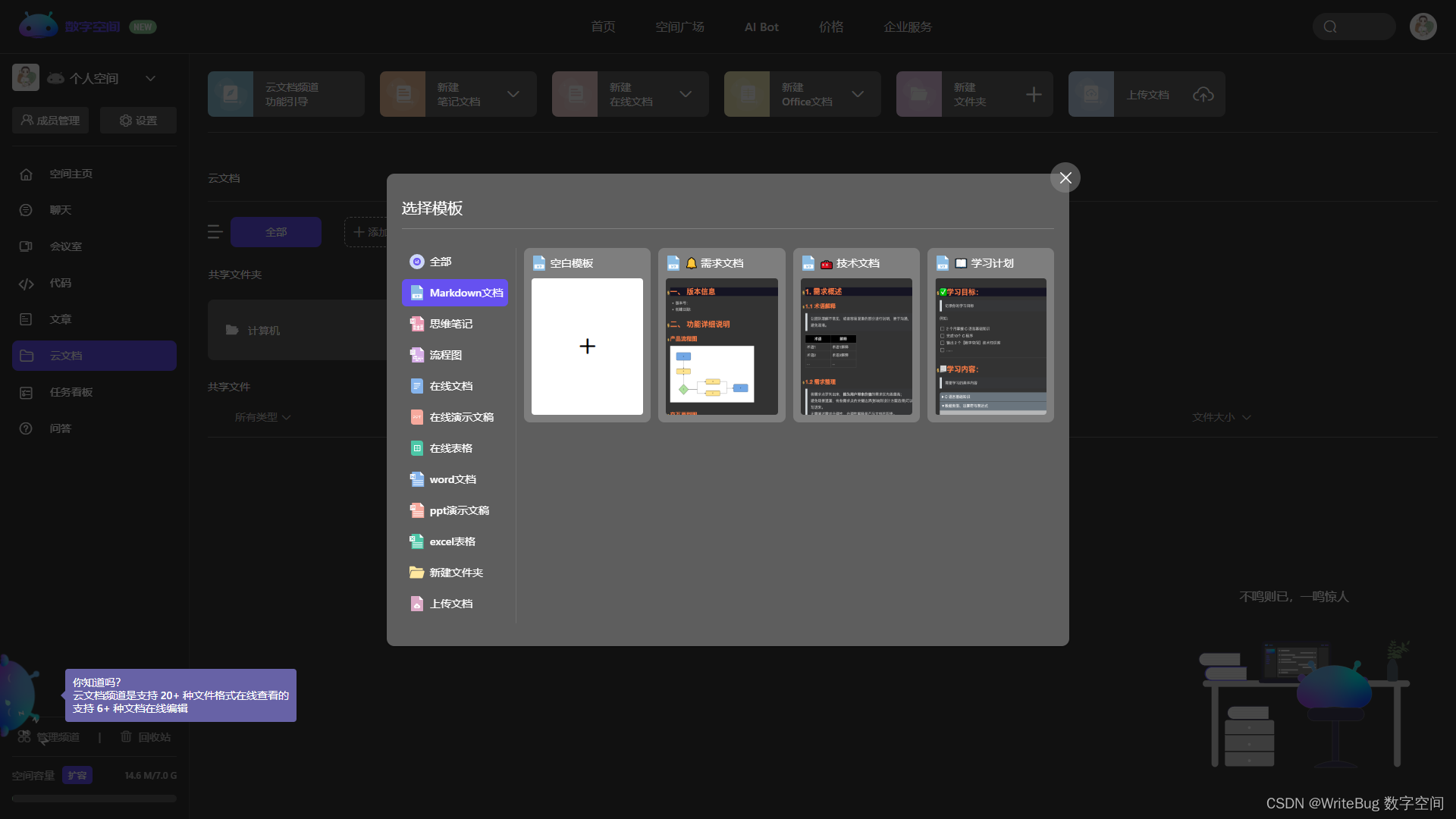 正因如此,我迫切需要一款能够充分满足我对笔记记录需求的工具,它能大幅提升我的创作效率,使我的笔记整理工作更为快捷且条理清晰。就在这时,WriteBug数字空间映入了我的眼帘。这是一款集大成的一站式内容创作管理工具,其卓越的功能设计让我眼前一亮。在WriteBug数字空间中,我能够轻而易举地创建并管理各类笔记,并且得益于其内置的Document Bot AI大模型,我在创作过程中可以获得强大的智能辅助,让灵感如泉水般源源不断地涌现,极大地丰富了我的思维世界。