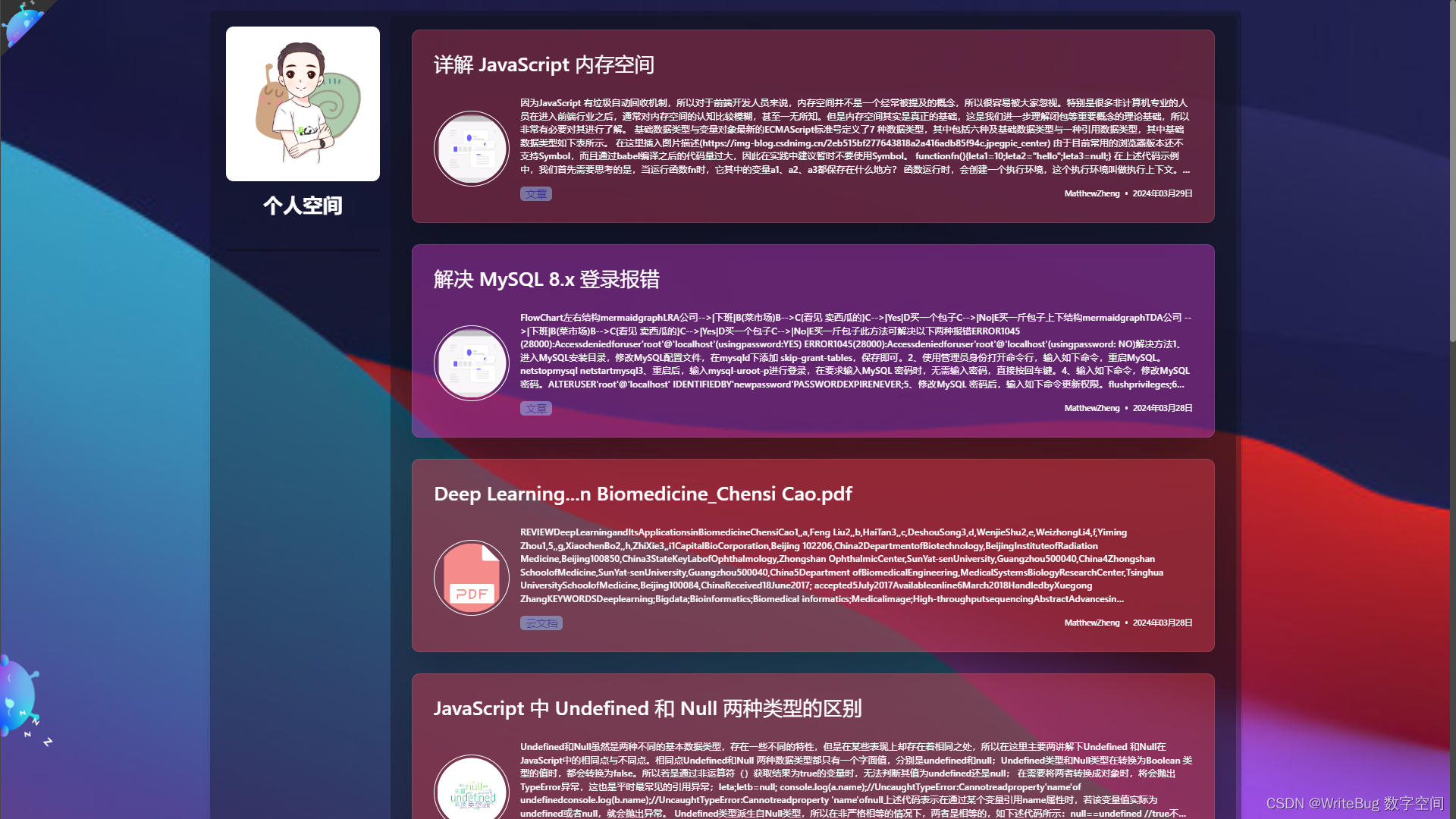 在WriteBug数字空间中,一个至关重要的组成部分便是空间首页。这个首页犹如一座璀璨的知识宝库,汇聚了我们所有的智慧结晶,构成了我们独一无二的数字领地。若将我们的知识比拟为珍贵的货物,那么空间首页就如同一艘满载宝藏的巨轮,承载着我们无尽的内容与见识,引领我们在浩瀚的知识海洋中自由探索。