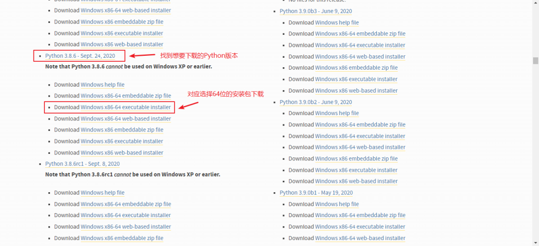 这里选择的是Windows系统下Python3.8.6 64bit版本的安装包,点击下载。