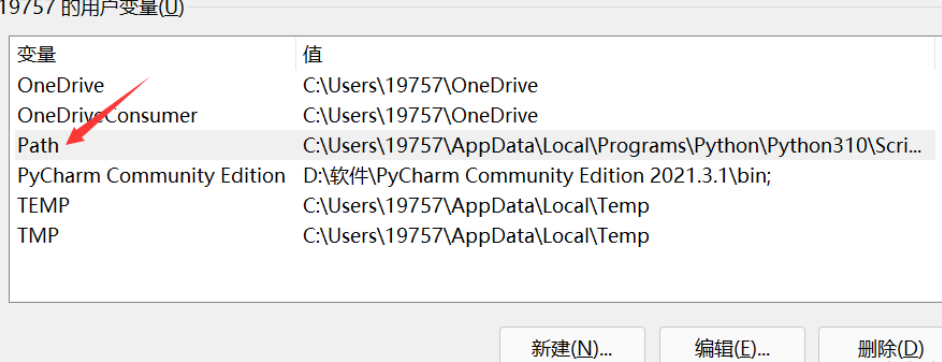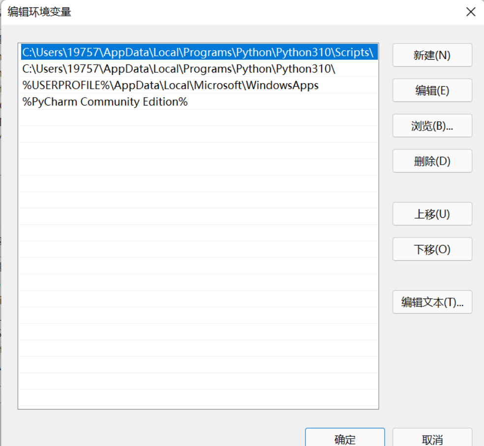 或者点击新建,然后把路径复制进去。(一般来说路径都是C:\Users\你的用户名\AppData\Local\Programs\Python\Python310,其中python310表示我的python版本是3.10,如果你的是3.8版本那么就是python38)