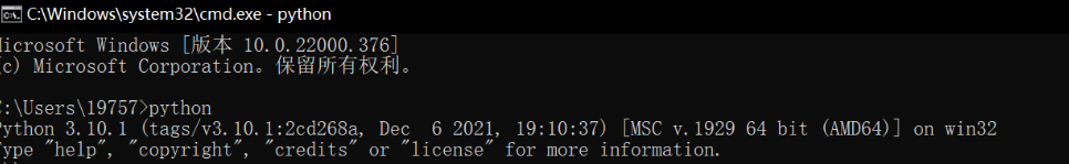 输入python后回车,出现你安装的python版本就说明安装成功,且环境变量已经配置成功!