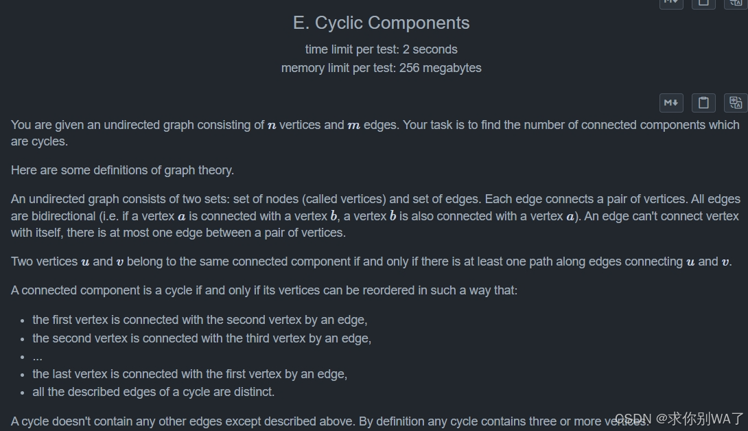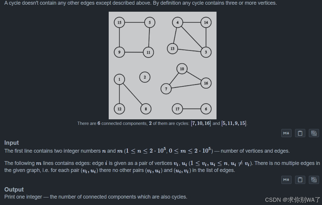 题目大意:求所有连通块当中 满足所有点度数为2 的联通块个数