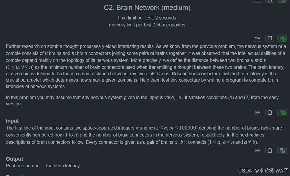 690C2. Brain Network (medium)(dfs+树的直径-->任意俩点距离最大值)