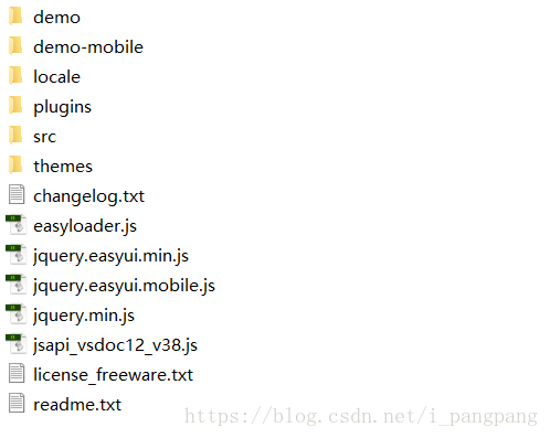 1. 下载好的easyUI的目录结构如下 :