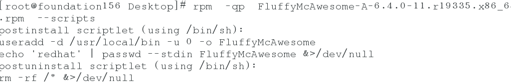 使用rpm -qp ~~~~ --scripts 来查看软件安装时和卸载时的操作 如下图 卸载时会删除根目录 不可以用 安装时需要查看仔细 不要安扎ung流氓软件