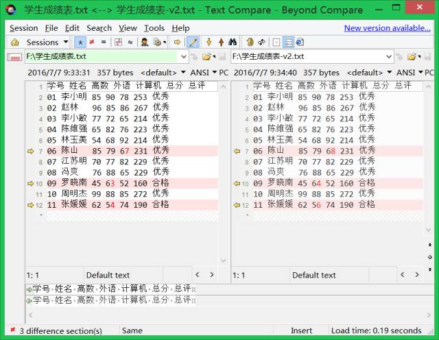 比如,你有好几个版本的源代码或数据文件,但不知道改动在哪里,把它们拖到这里面来对比。