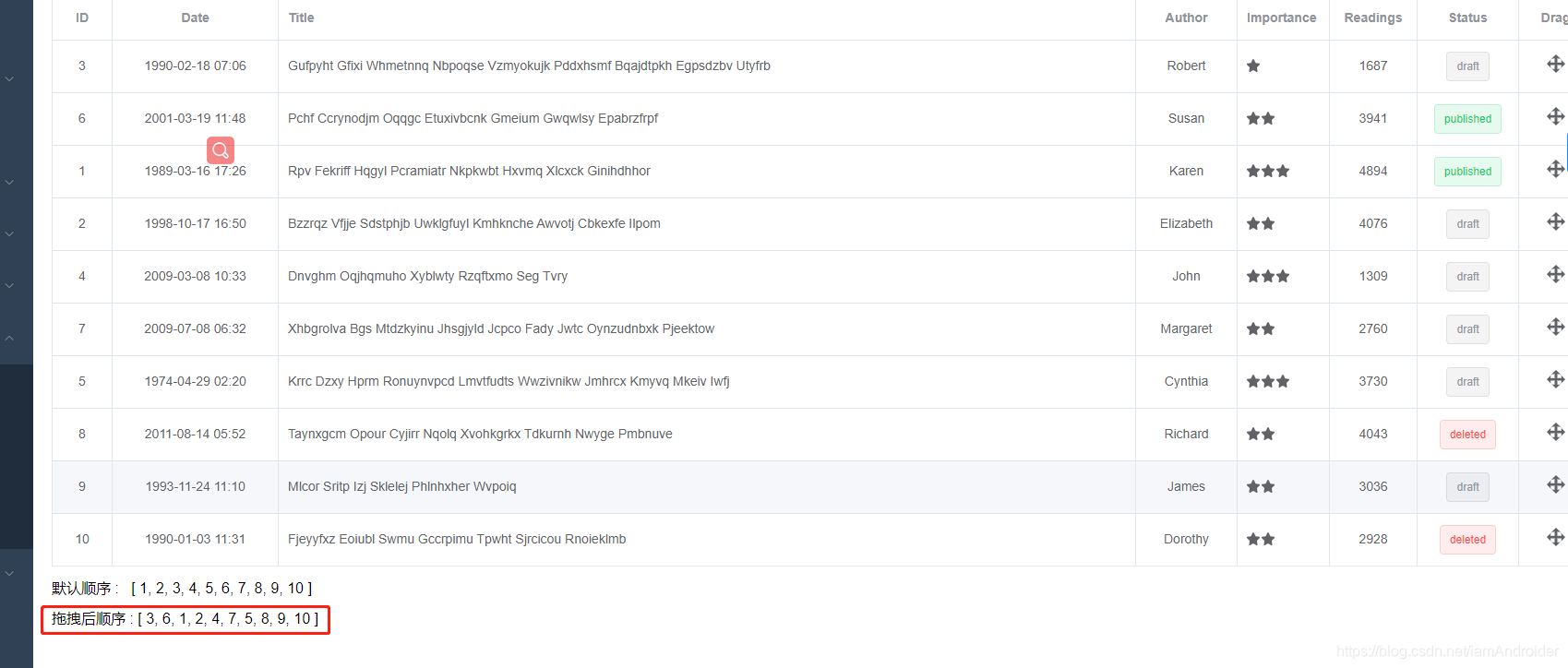 前端拖曳排序后端代码如何实现呢?就如下面的需求
