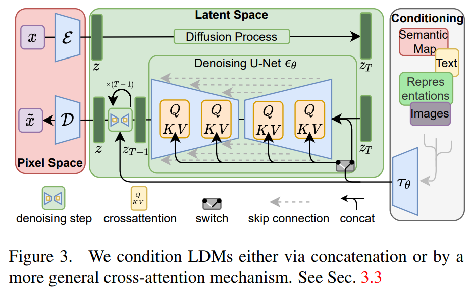 图3 通过串联或更一般的交叉注意力机制来调节LDMs。
