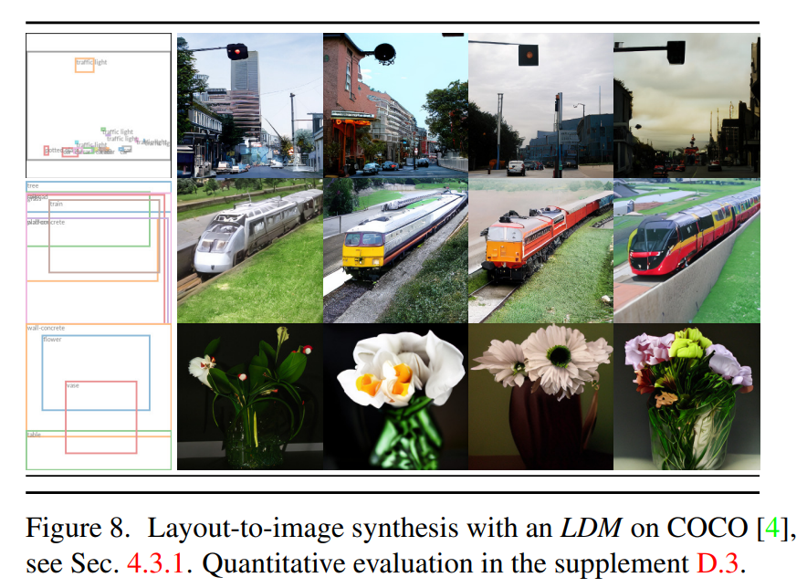 图8 在COCO上使用LDM进行布局到图像的合成,参见第4.3.1节。