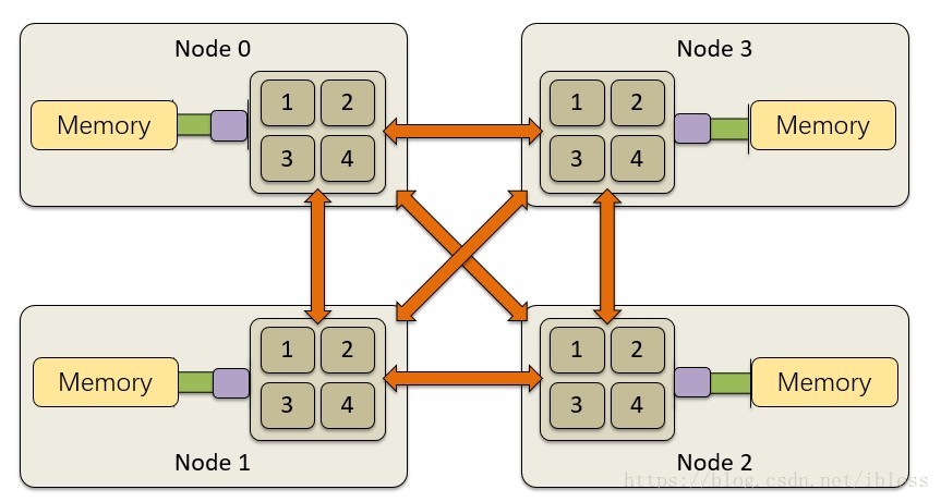 下面我们来说一下NUMA架构,下图是NUMA架构的一个示例: