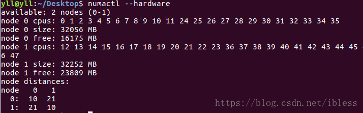 从上面的图中,我们可以看到一台计算机有多个Node(节点),每个节点中有多个Core(核),上图中是4个核,在每个节点内部都有自己的内存,称之为本地内存。与本地内存相对的是远端内存,对于Node0来说,Node1、Node2、Node3中的内存都是远端内存。在节点中,CPU与内存之间通过片内总线进行连接。各个节点之间通过互联模块(Crossbar Switch)进行连接。需要注意的是,NUMA节点中CPU对节点内部内存与节点外部内存的访问是有差异的。依旧是一个CPU对本地内存和远端内存的访问时间是不同的,一般来说,CPU对本地内存的时间要比远端内存的访问速度快1.3--5倍。这也就是称为NUMA(非统一内存访问)的原因。NUMA既然属于共享内存架构,也就是每个CPU都可以访问系统中所有的内存,只不过访问这些内存的速度或方式是有差异的。一般来说,NUMA节点之间是相互连接的,这个有一个Node Distance的概念,也就是节点与节点之间的距离是不同的。下图是一个获取Node Distance的截图: