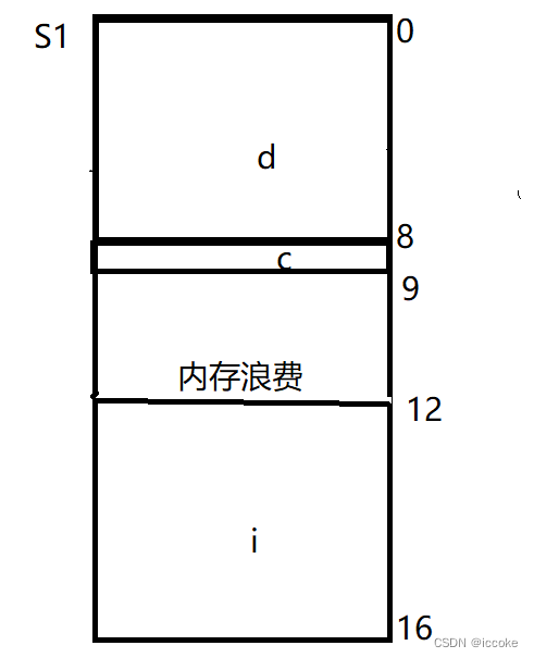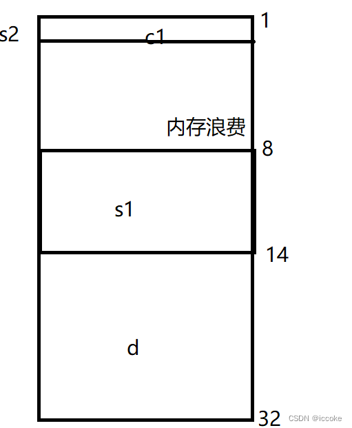 首先b先存入内存中,那么c存入时对于的地址就是2,时c的整数倍,那么c就可以存到3这个位置,然后再存入a,对应的首地址是3,不是int 的整数倍,我们就要在c后面浪费一个字节使其满足结构体的内存对齐规则,然后再存入d,地址是8,是long int的整数倍,最后再存入g,地址是12,不是double的整数倍,然后应该在d后面浪费4个四个字节以求满足结构体的内存对齐问题,然后最后在判断整个结构体的大小是不是结构体内最大基本类型和默认内存对齐数中比较小的数的整数倍,double 类型占8个字节,vs中默认结构体对齐数是8,所以大小应该是8的整数倍,我们判断为24是正确的,符合内存对齐的规则