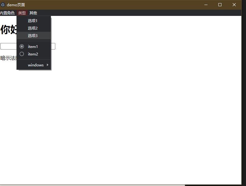 let customMenu = new MenuItem({label: '自定义菜单', submenu: menuItem});