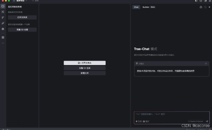 目前 Trae 内置 Builder 和 Chat 两种模式:
