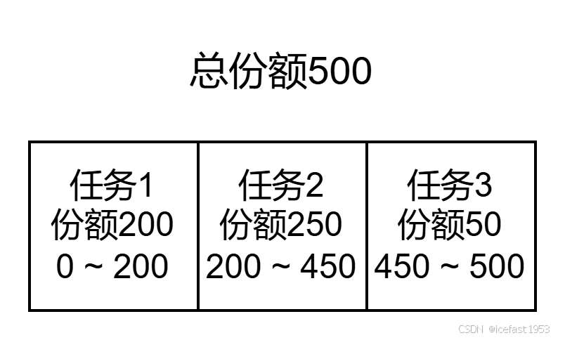 当需要调度进程的时候,会随机(伪随机)生成一个范围中的数,用来判定调度哪一个任务