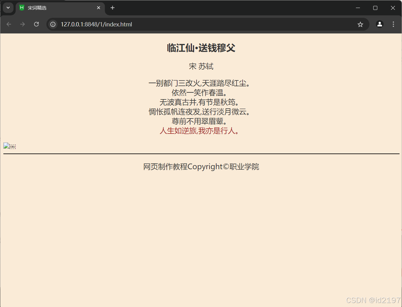 <p align="center">网页制作教程Copyright©职业学院</p>