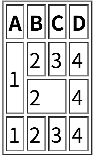 | 跨行合并 | 添加属性 rowspan,值为想要合并的数量 |