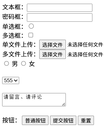 | checkbox | 多选框,如果要默认选中可以加checked |
