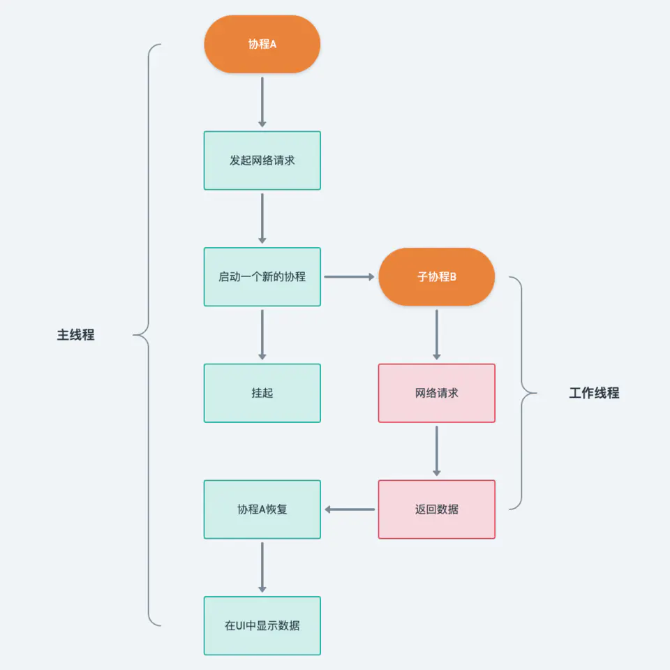 Kotlin 的协程,可以理解为一种类似线程池的封装,每个协程执行的背后,都依托于一个线程。而它与线程池相比的优势,在于用更精炼的代码,利用阻塞的思想写出非阻塞式的代码。