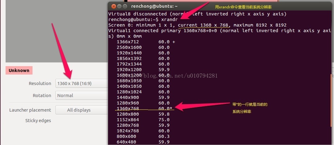 1.用xrandr命令查看当前分辨率。当前分辨率为1360X768