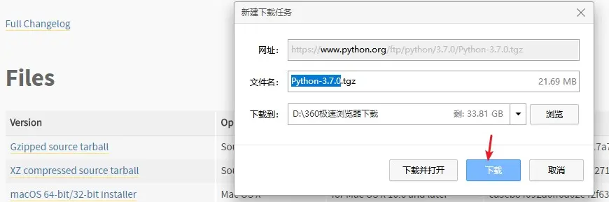如果想自定义安装,可参考下面步骤,首先点击此官网链接下载Python3解释器的Linux版本