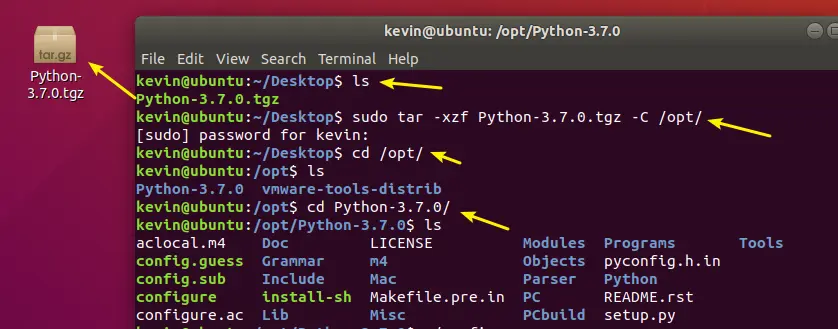 sudo tar -zxvf Python-3.7.0.tgz -C /opt/
