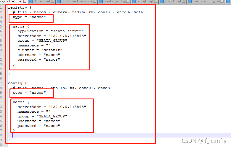 我们这里要配置的注册中心与配置中心都是nacos 所以我这里删除了其余的配置