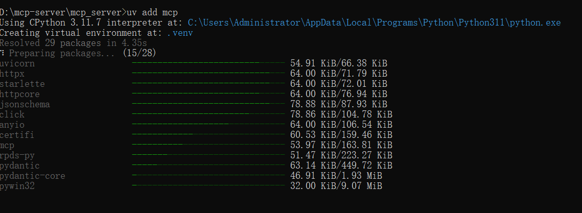 在MCP开发中,建议借助uv工具来创建虚拟环境并管理依赖项。uv是用Rust编写的Python依赖管理工具,其功能与pip和venv类似,但具备更快的速度和更高的效率,能更出色地管理Python虚拟环境和依赖项。这意味着uv集创建虚拟环境与包管理功能于一身,可直接替代pip和venv。
