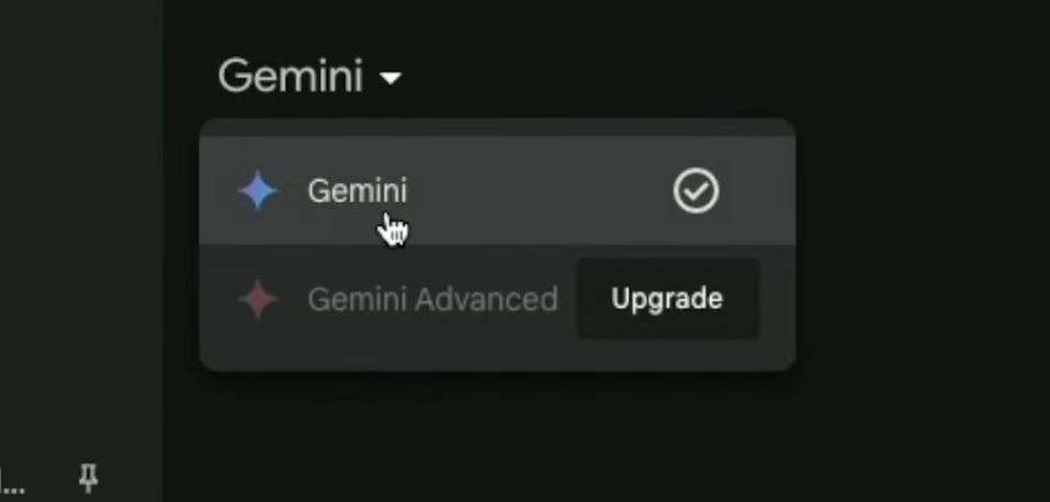 刚进 Gemini 的界面,你可能会看到右上角有一个地方可以点(录视频的时候是这样),里面有两个选项:一个叫 Gemini,一个叫 Gemini Advanced。