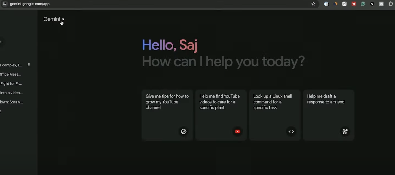 左侧边栏还会显示你最近和 Gemini 的对话记录。你可以随时点开之前的对话,继续聊下去。这个功能很实用,方便你接着之前的话题深入探索或者修改。