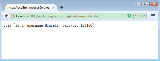 8. 在浏览器中输入地址:http://localhost:8080/xyz.huning.web.spring4.custom/userServlet