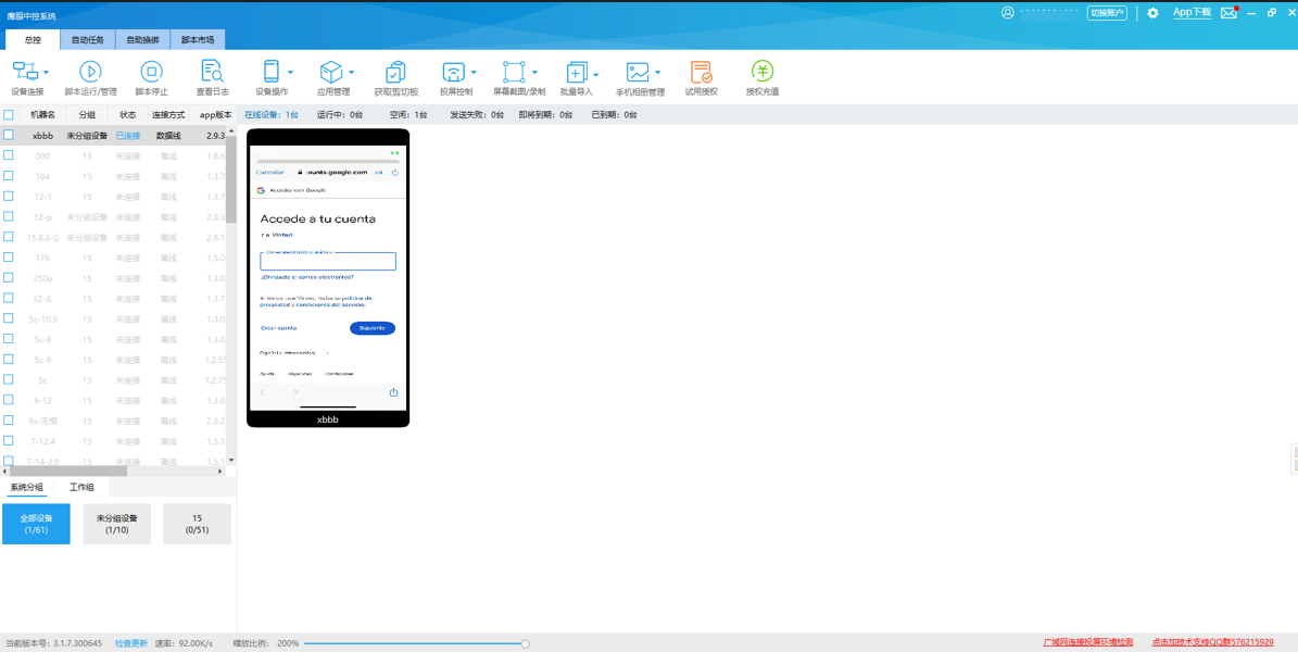 鹰眼投屏软件作为专业的批量设备管理工具,支持电脑远程管控几十台至上千台手机设备,兼具批量操作、实时监控等核心功能。用它注册Vinted,相当于为每个账号配备了专属的“自动化助手”,从环境搭建到账号激活,全流程效率提升80%以上。