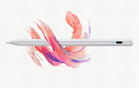 推荐理由:冉阅电容笔在外观上整体比较简约,纯白色,笔身较圆润,握在手里的舒适感还算不错,符合人体工学的设计。它需要通过蓝牙连接查看电量情况,不过会出现蓝牙连接不上的情况,需要重新磨去痕迹,重启电容笔,再连接蓝牙,这一点有些麻烦。它也支持倾斜压感,可以根据倾斜的不同角度调节笔画的不同粗细,一般绘画和书写的细节能把控地到。