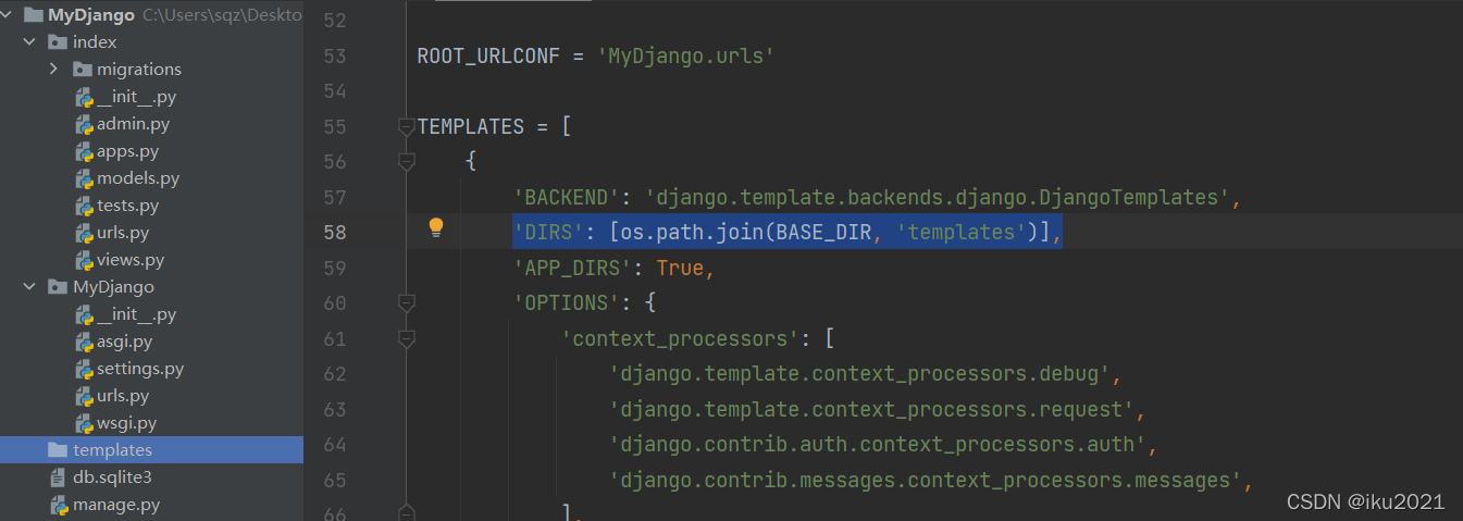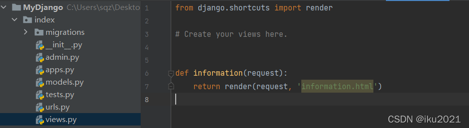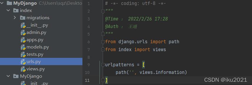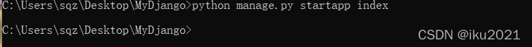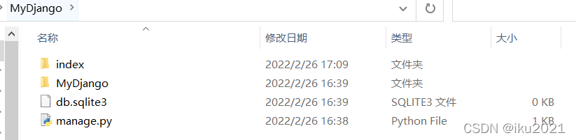 1.命令行输入python manage.py startapp index,这时候Mydjango工程目录如下: