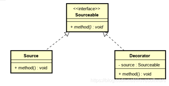 3.定义一个装饰类Decorator实现Sourceable接口,装饰类持有被装饰对象的实例