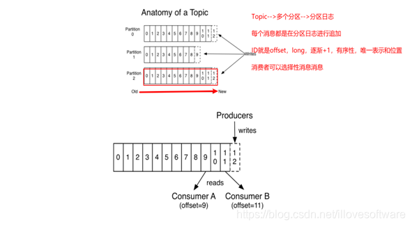6.分区中的每一个记录都会分配一个id号来表示顺序,称之为offset,offset用来唯一的标识分区中每一条记录。