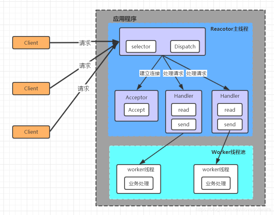 5.worker 线程池会分配独立线程完成真正的业务,并将结果返回给 handler。