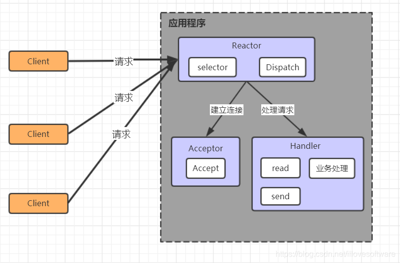 3.是建立连接请求事件,则由 Acceptor 通过 Accept 处理连接请求,然后创建一个 Handler 对象处理连接完成后的后续业务处理。