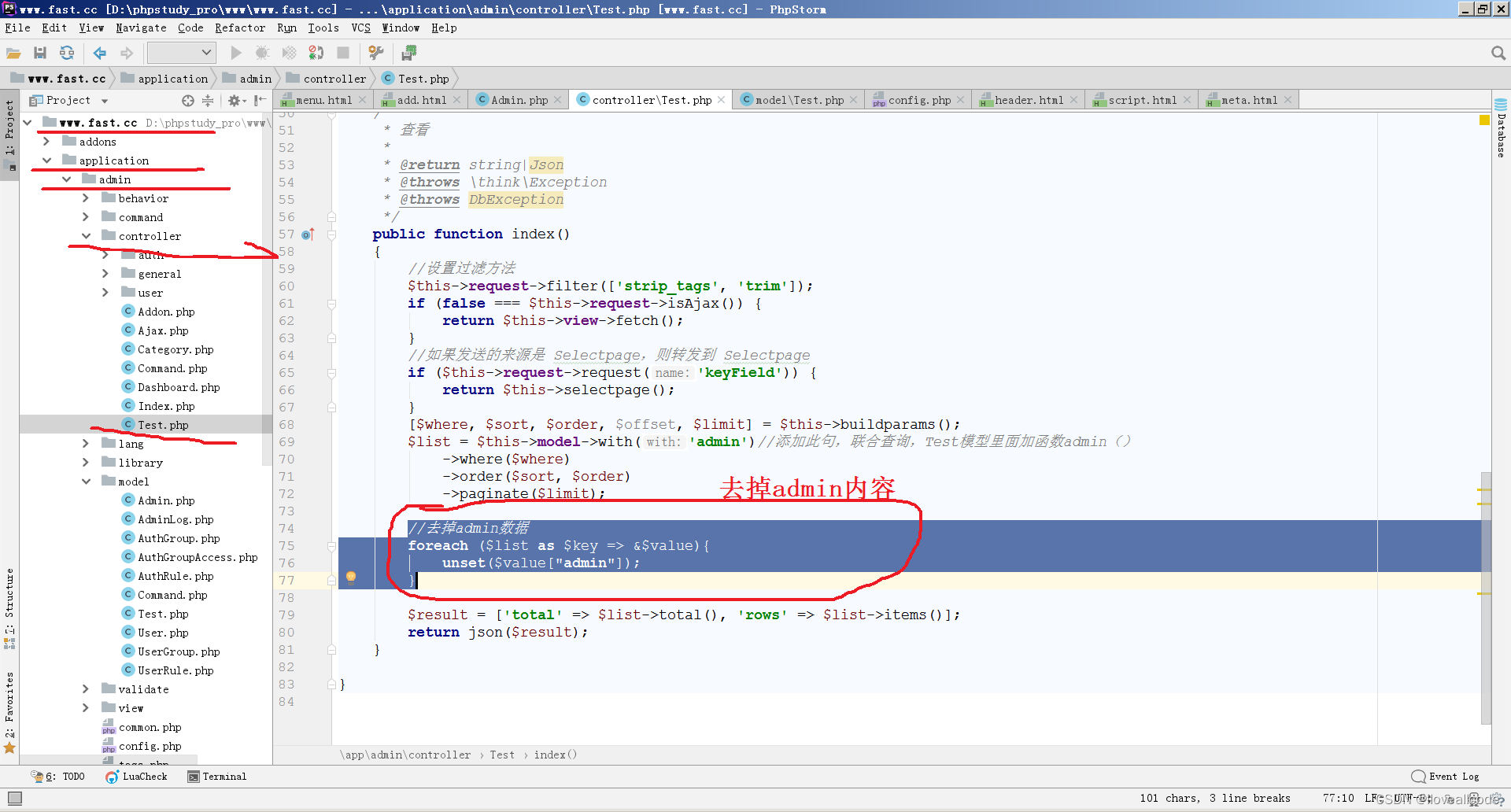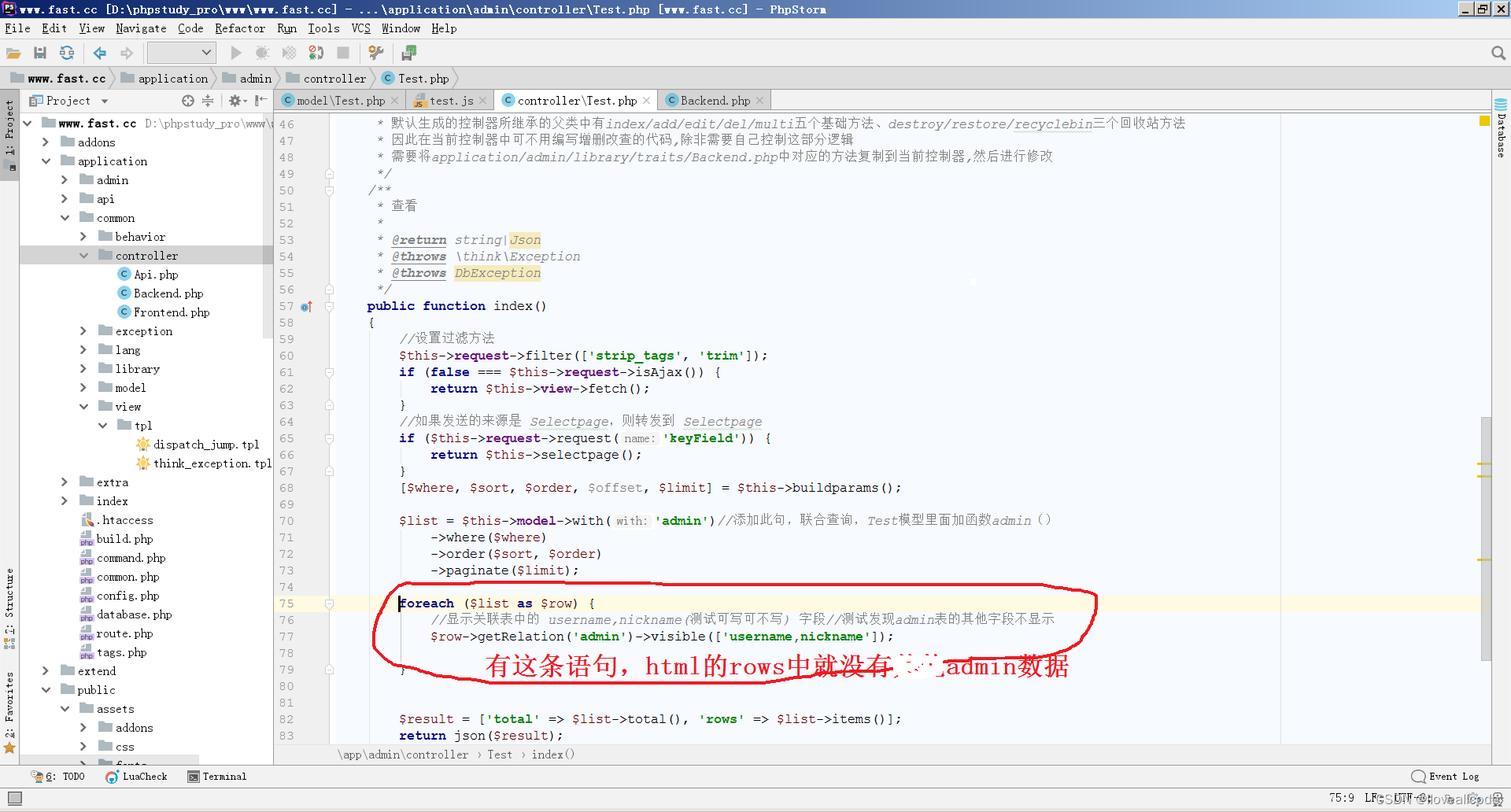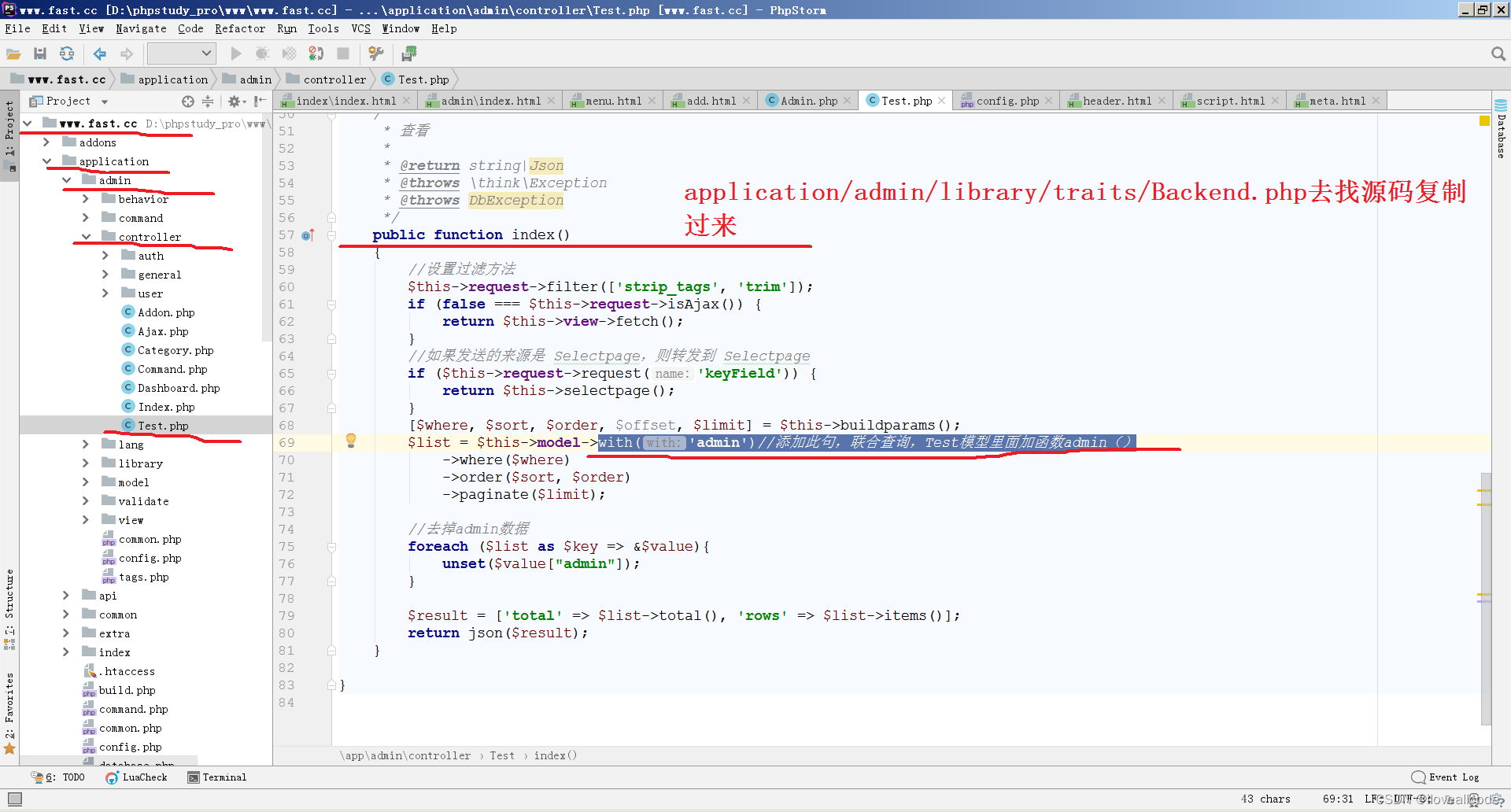第五步:注意安全,上面骚操作把admin全部返回给用户浏览器,修改如下: