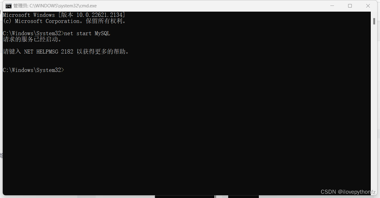 4、net start MySQL >>>>>>>enter