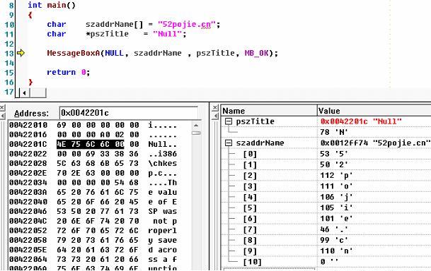 MessageBoxA(NULL, szaddrName , pszTitle, MB_OK);