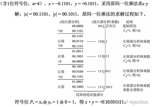 理解:原码的乘法,数值部分和符号部分分开计算,即计算|x|*|y| 和 Ps=Xs⊕Ys