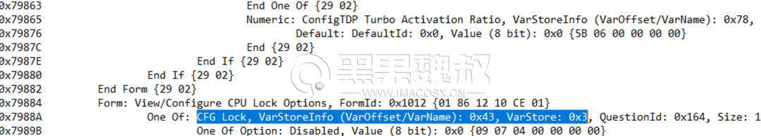 打开文本文件并搜索CFG Lock, VarStoreInfo (VarOffset/VarName):并注意紧随其后的偏移量(即:0x43)和紧接在偏移量之后的VarStore ID(即:0x3)