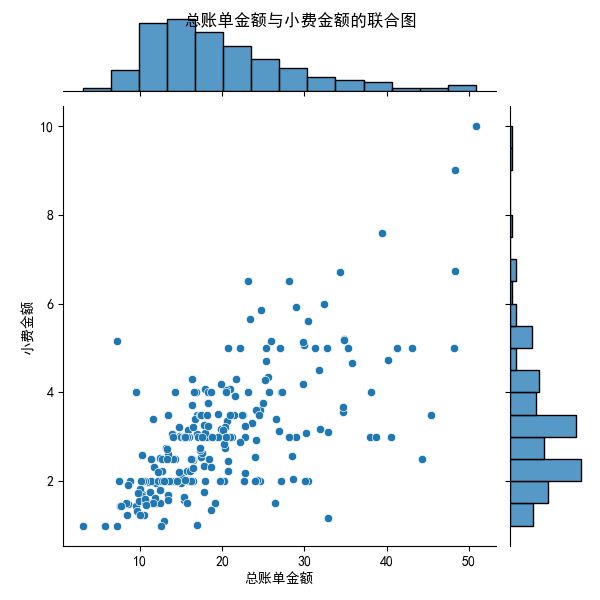 joint.fig.suptitle("总账单金额与小费金额的联合图")